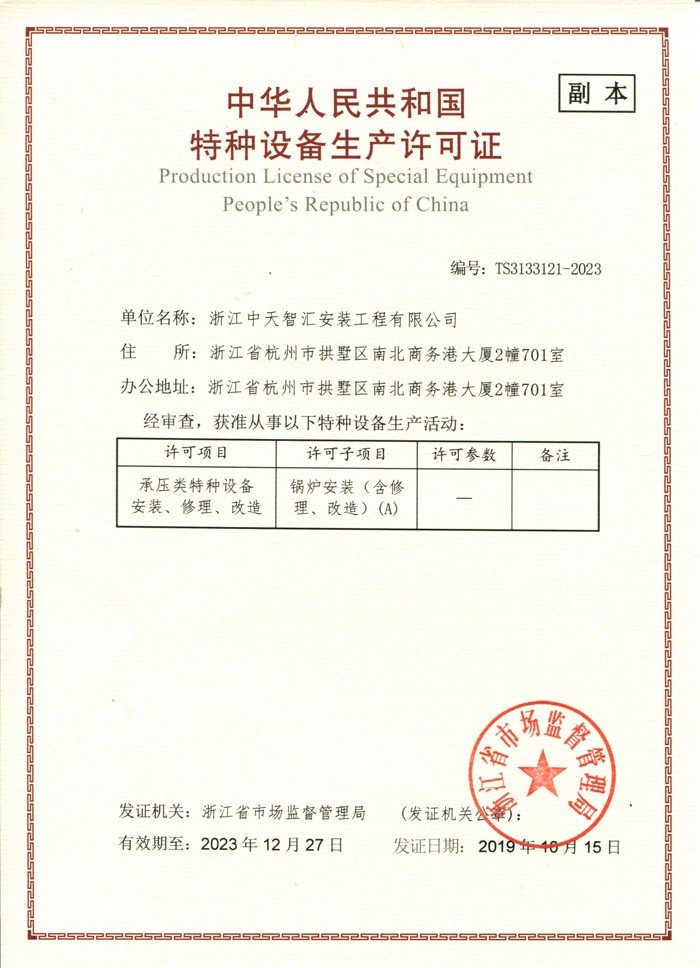 特種設備鍋爐許可證