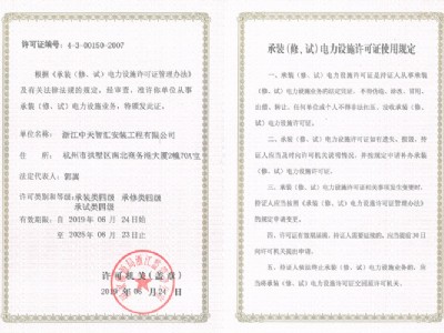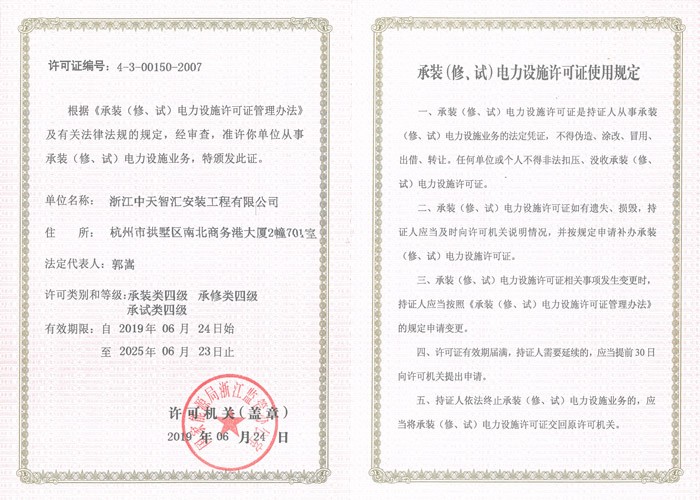 承裝(修、試)電力設施許可證