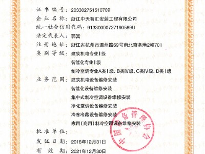 中天智匯安裝 - 企業資質