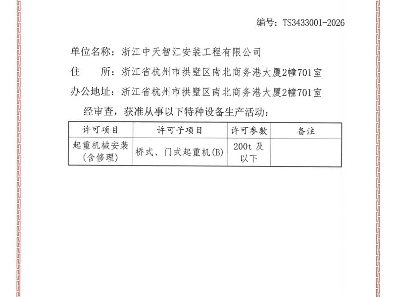 特種設備起重機械許可證