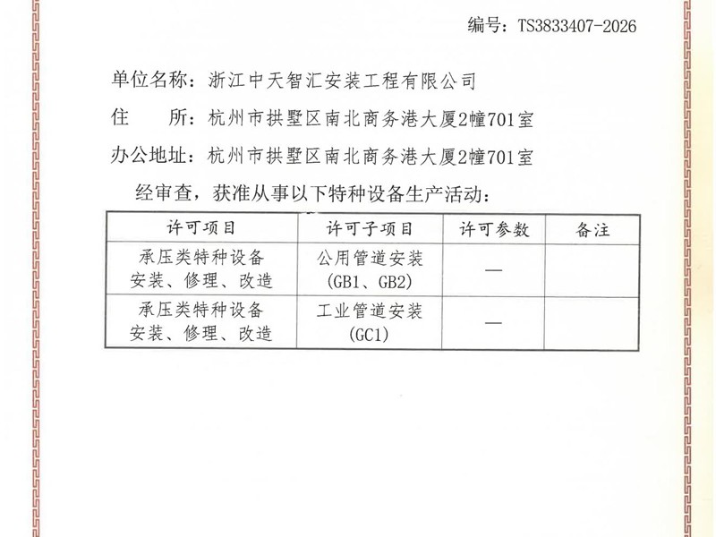 特種設備壓力管道許可證