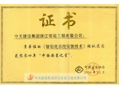 “智能化系統安裝技術”榮獲2004年度“中國安裝之星”