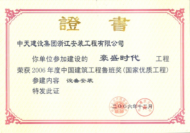 西安豪盛時代工程 2006年度中國建設工程魯班獎