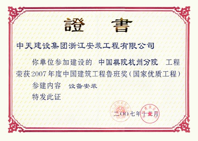 中國棋院杭州分院 2007年度中國建設工程魯班獎