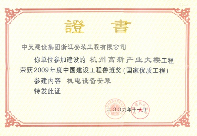 杭州高新產業大樓 2009年度中國建設工程魯班獎